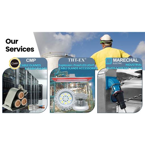 THT-EX × CMP × MARECHAL | Lighting × Cable Glands & Cable Cleats × Current Connectors